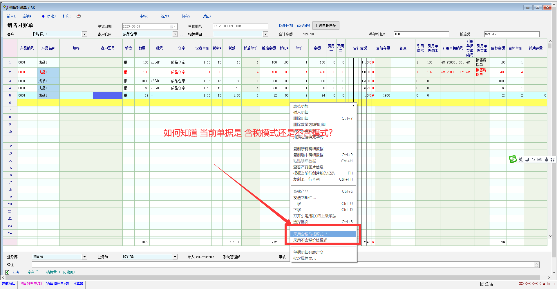 这个含税模式似乎是可以随时改动,并且不是与单据关联的。