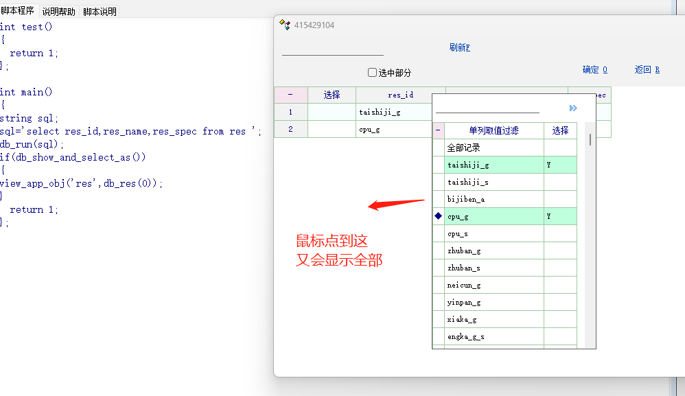 单列取值后,可以实时看到过滤后的结果,但 鼠标一移开,又恢复了全部记录