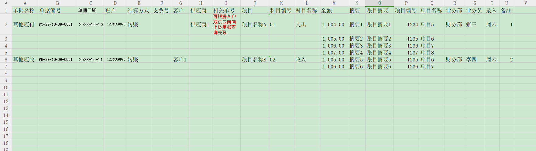 或者以银行流水清单编辑相关支付收入内容,如付款单、收款单、其他应收等