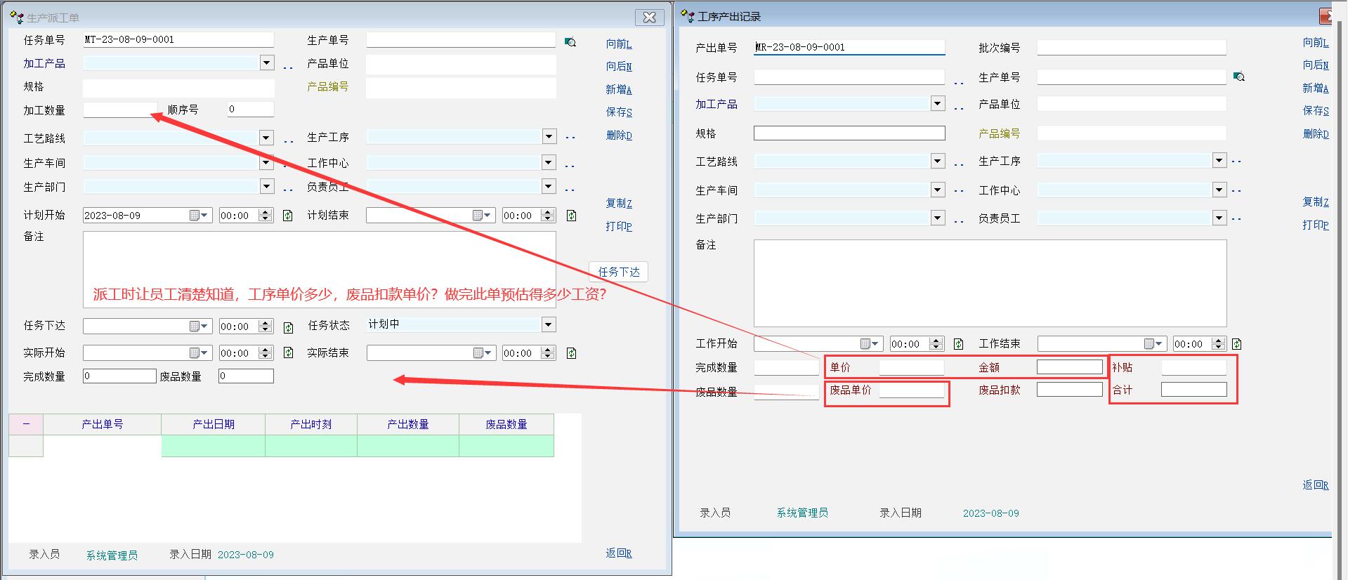 讨论_希望生产派工单跟工序产出单一样添加单价、金额等信息_产供销