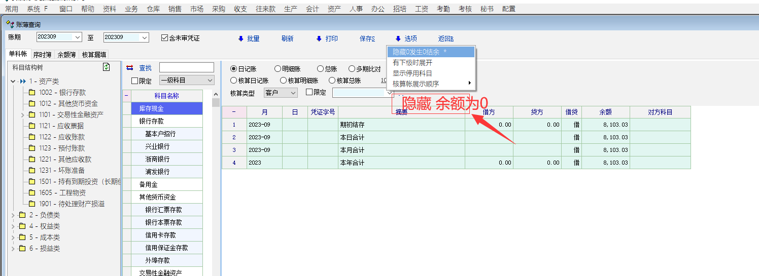 会计账簿 账薄查询,增加选项,隐藏余额为0的选项