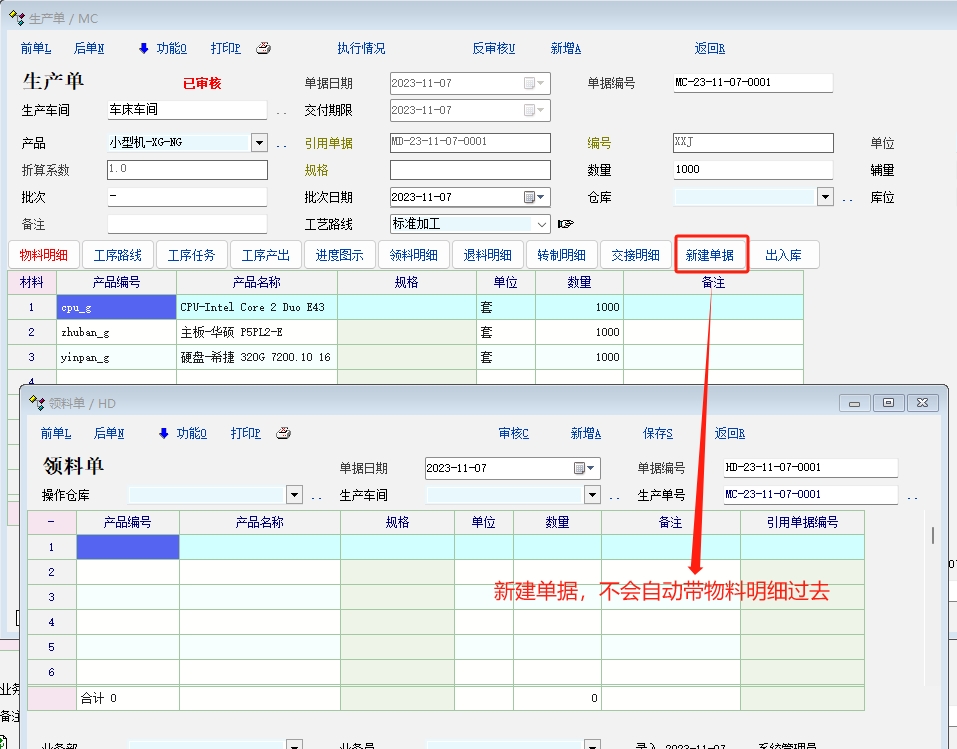 求助_生产单-->新建单据,不会自动带物料明细过去_产供销