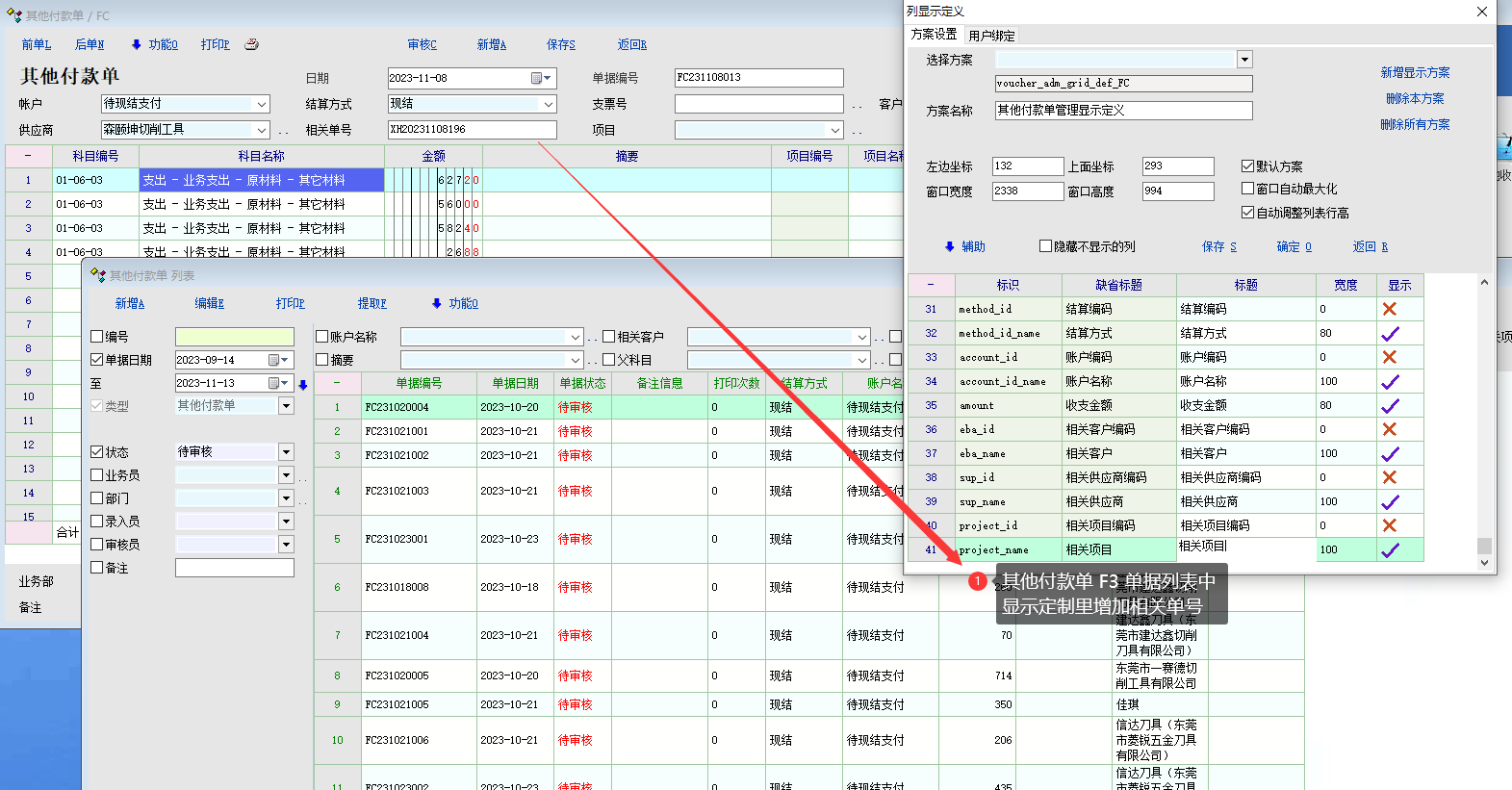 推荐_建议 其他付款单 F3 列表中显示定制增加相关单号_产供销