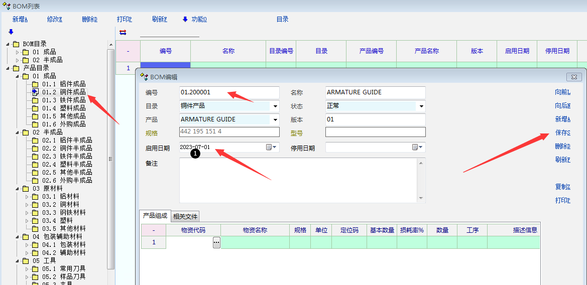 一般我们建议不同的BOM组成应该对应不同的产品编号,可以采用主产品编号+版本号,比如 xxj001-2024A这样的方式。