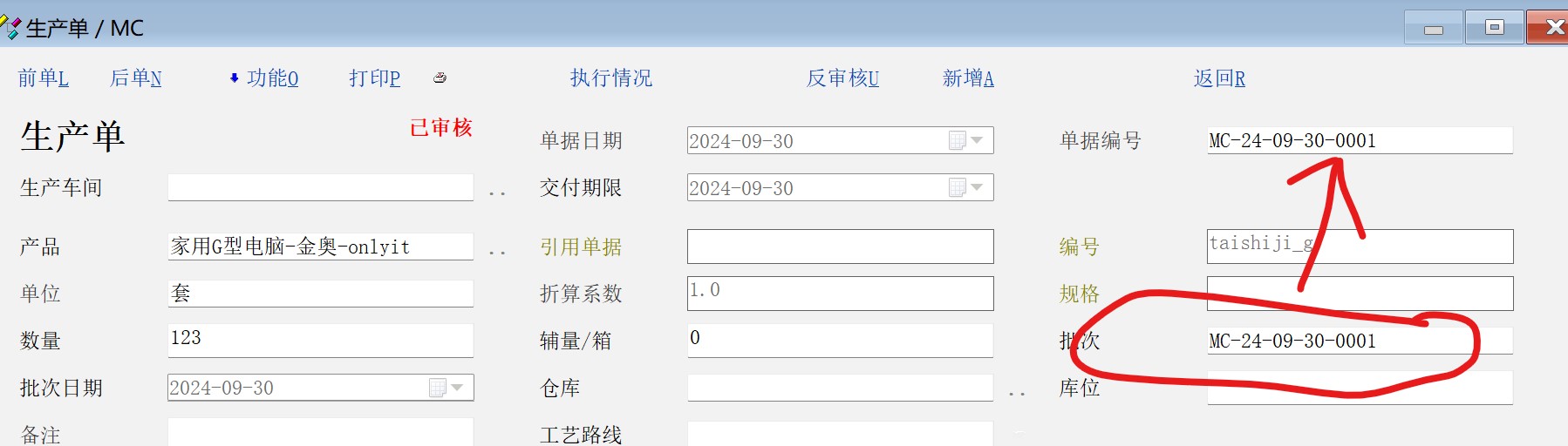 求助_填写生产单时,批次自动获取当前单据编号_产供销