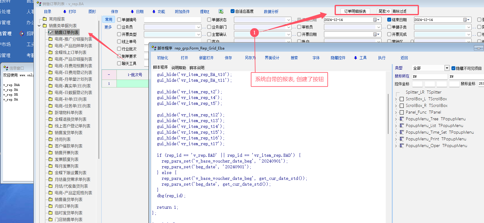 应用场景: 在销售报表中, 增加了自定义报表金蝶报表分组, 在分组下添加了自定义报表 ds_008, 然后切换到自定义报表时, 不会触发 报表分组 的rep_change函数 建议: 1. 添加的报表分组和 自定义报表, 切换时, 会触发报表分组的rep_change脚本 2. 自定义报表放置在报表中时, 也能支持定义报表的脚本. (类似于常规的 adm.grid.v_rep.BA) 这样的 |