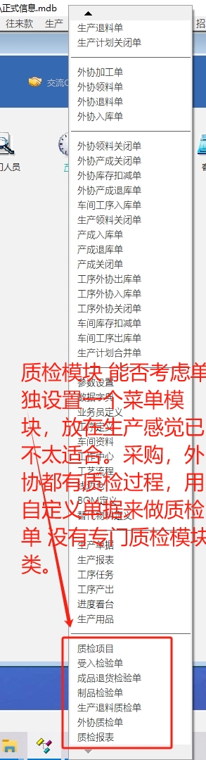 质检模块是否考虑单独设置一个菜单模块?多个部门环节都质检过程,放到生产模块感觉不合适了。