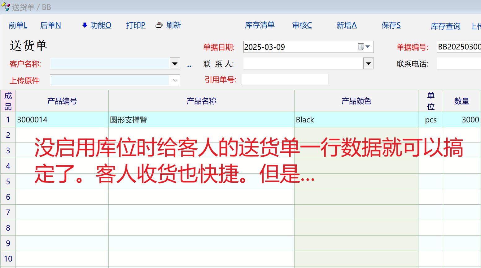 送货单没启用库位时