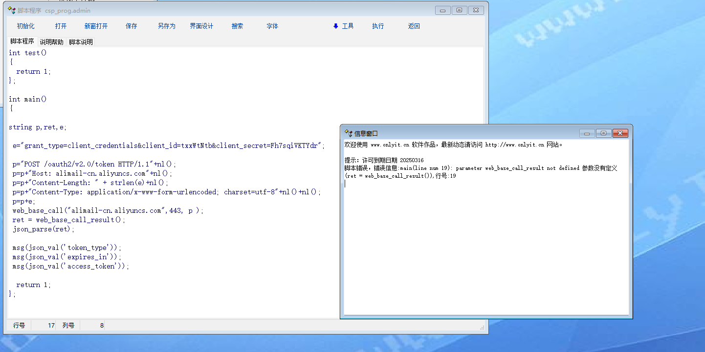 main(line num 19): parameter web_base_call_result not defined 参数没有定义 (ret = web_base_call_result()),行号:19