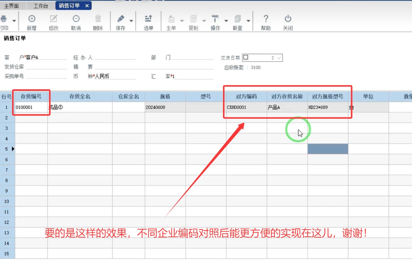 二、另一个思路:客户物料编码字段在销售订单及其它销售管理模块中的列显示定义中增设出来,做销售订单的时候客户物料编码能一次性手动录入,后续终身自动记忆带出,这个更加理想,谢谢。