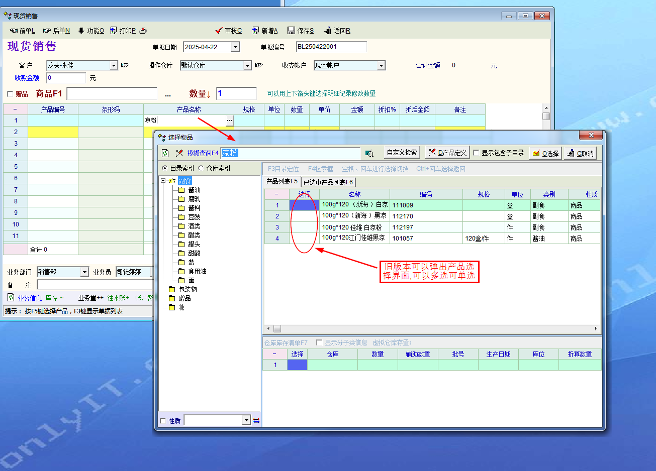 由于用户长期使用旧版本,积累了大量的操作习惯,特别物资单据的产品选择操作。