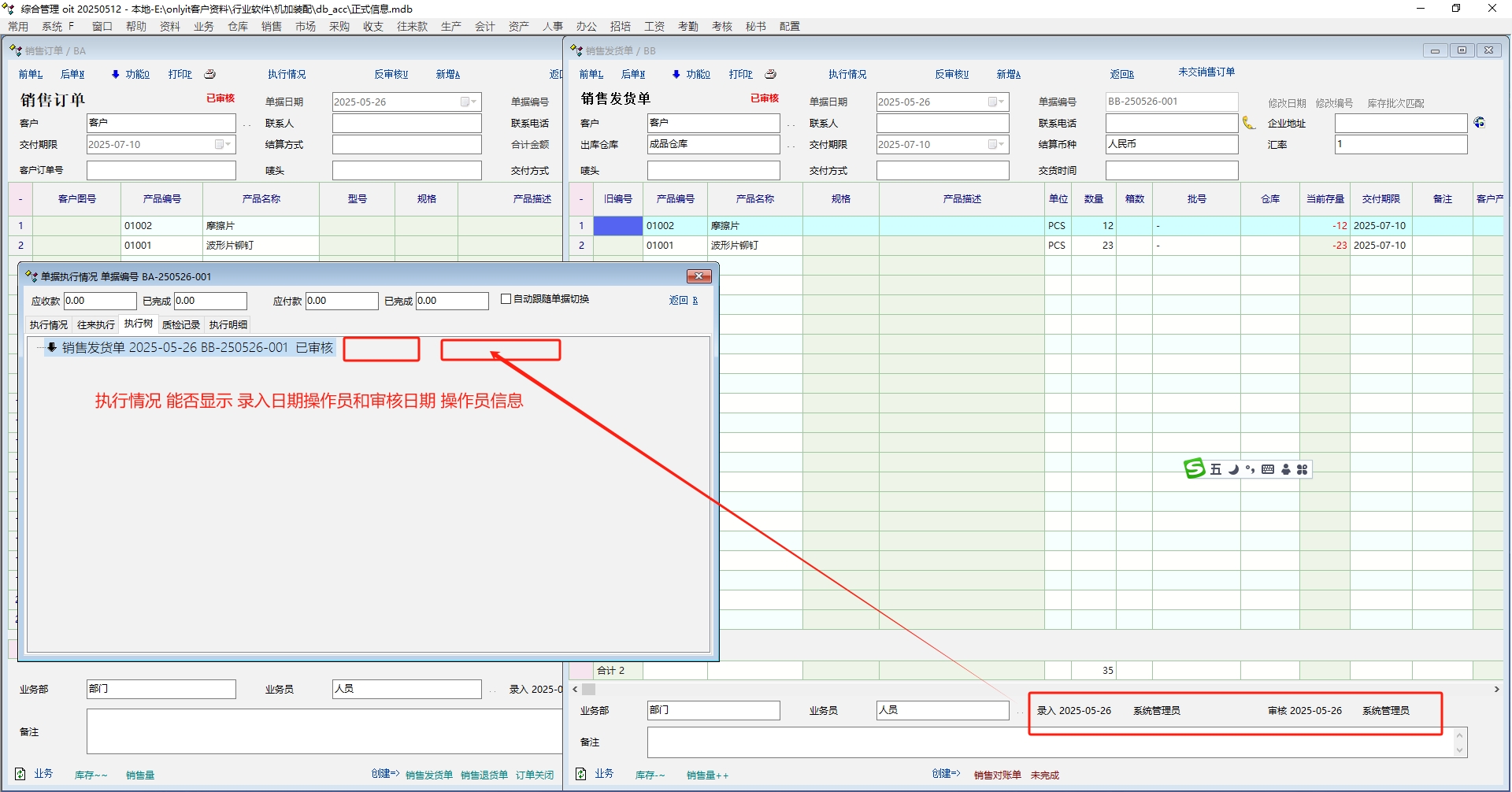 执行情况 能否显示 录入日期操作员和审核日期 操作员信息