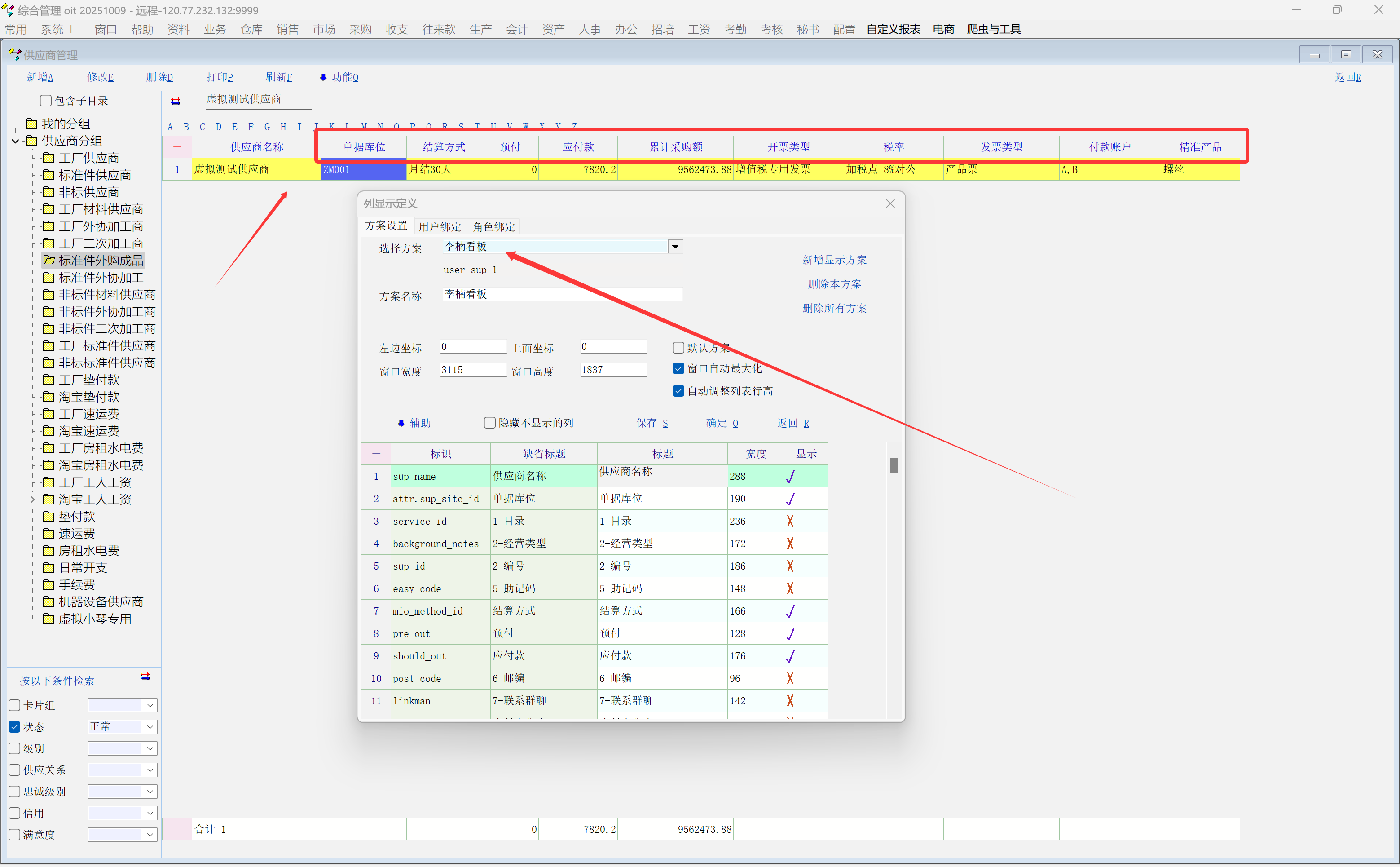 有客户在供应商资料中定义了多选字典[付款账户], 显示方案中显示的编码.
