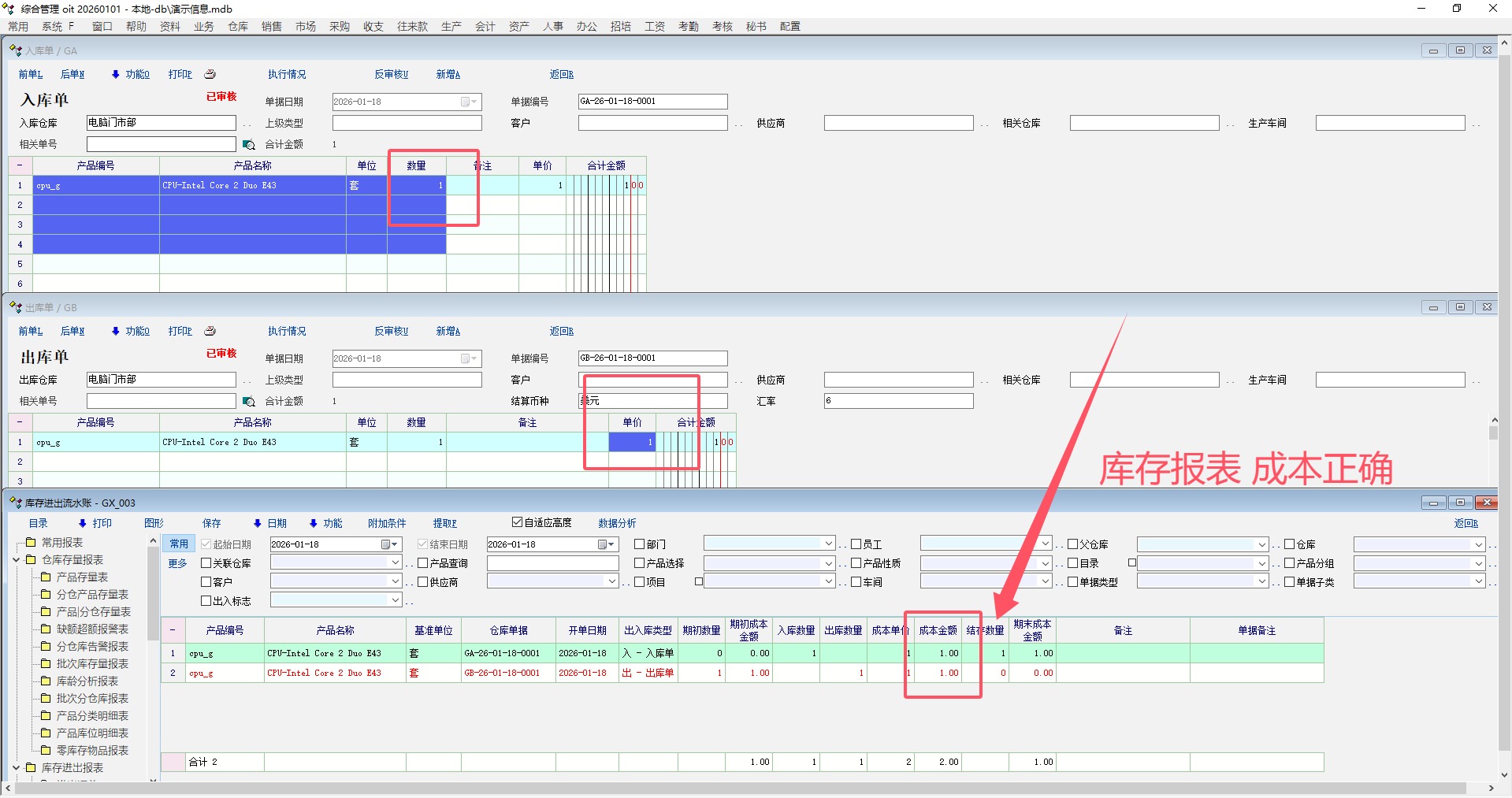 库存进出流水账里 出库成本是1元,生成成本额 是6 元