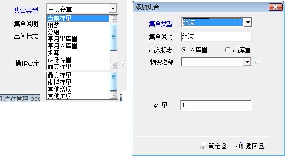 先设定物资 把 要的明细物资选择出来 然后 添加集合 组成物资(加两次 别是 A物资B物资) 选择 出库量  ,然后 添加集合  选择 当前库存量 选择 入库量  就行了 看 后面的结果啊 正的是有的 负的就是少的