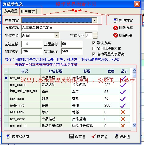如果实现以上 那 显示定制 里限定就很完善了 ,既保证了 一些主要敏感信息可以屏蔽 ,也给操作员其它信息的 自由的调整 。