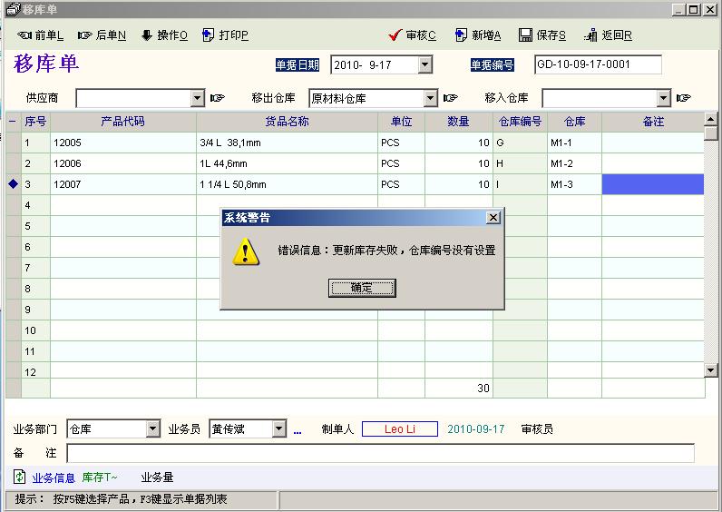 仓库的管理是以仓库的个数及分类进行的,我不明白为何会想到一张凭证中要实现一个库的物品移到两个库....???