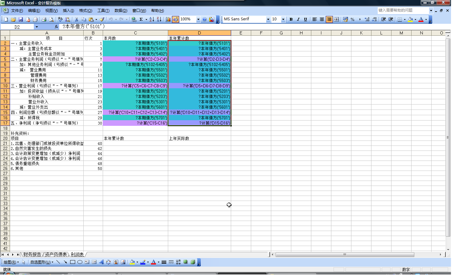 收入科目 应引用 贷方金额,但所有模板中都列成了借方。模板的利润表中其它几个科目也有类似问题。
