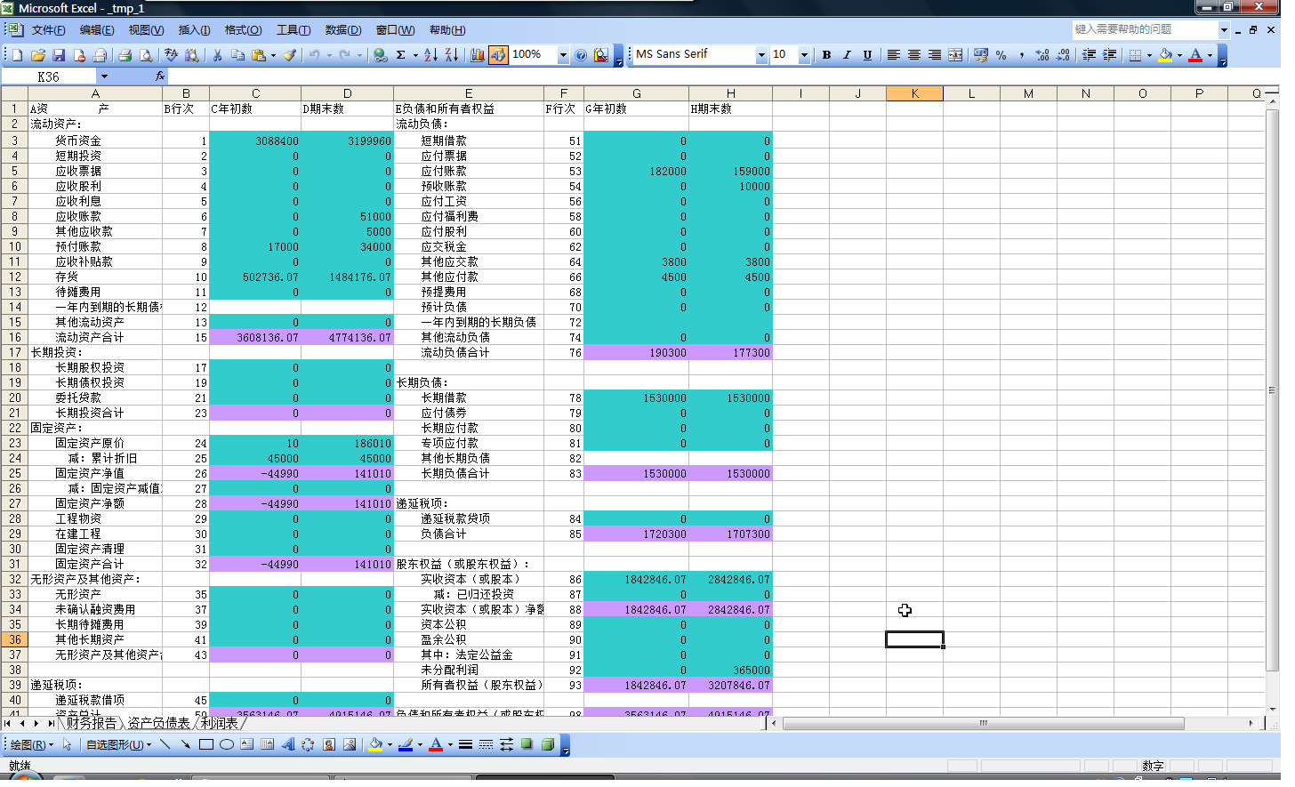 资产负债表