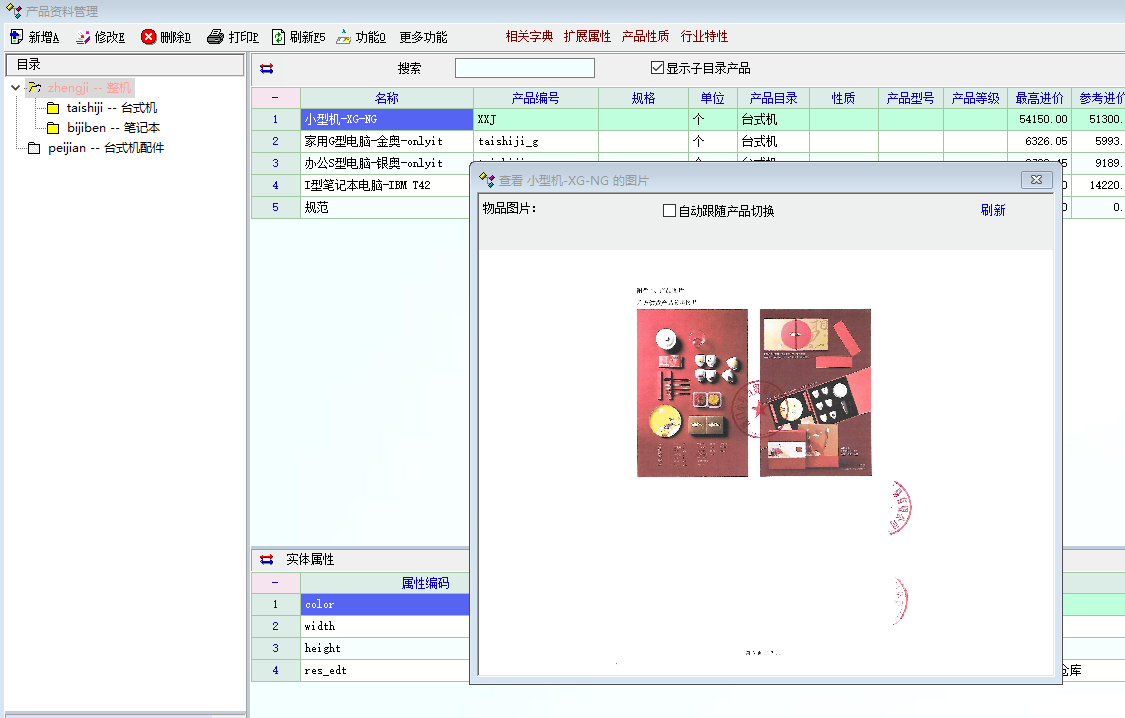 最新版本 单据界面、产品管理界面、库存清单右键 都有查看产品图片功能的。