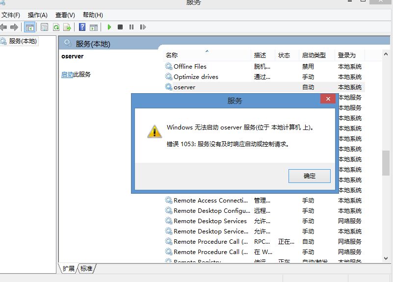 求助_oserver在win2012R2中无法实现自动启动,提示服务器没有及时响应或控制请求_产供销