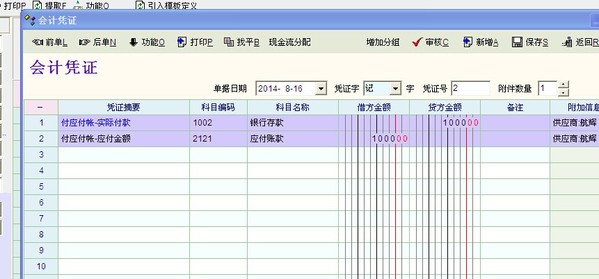 财务会计模板中引入业务凭证如何可以做到,引入后有会计科目的明细科目呢?图片中的银行存款没有下一级科目,怎样可以做到引入下一级科目?