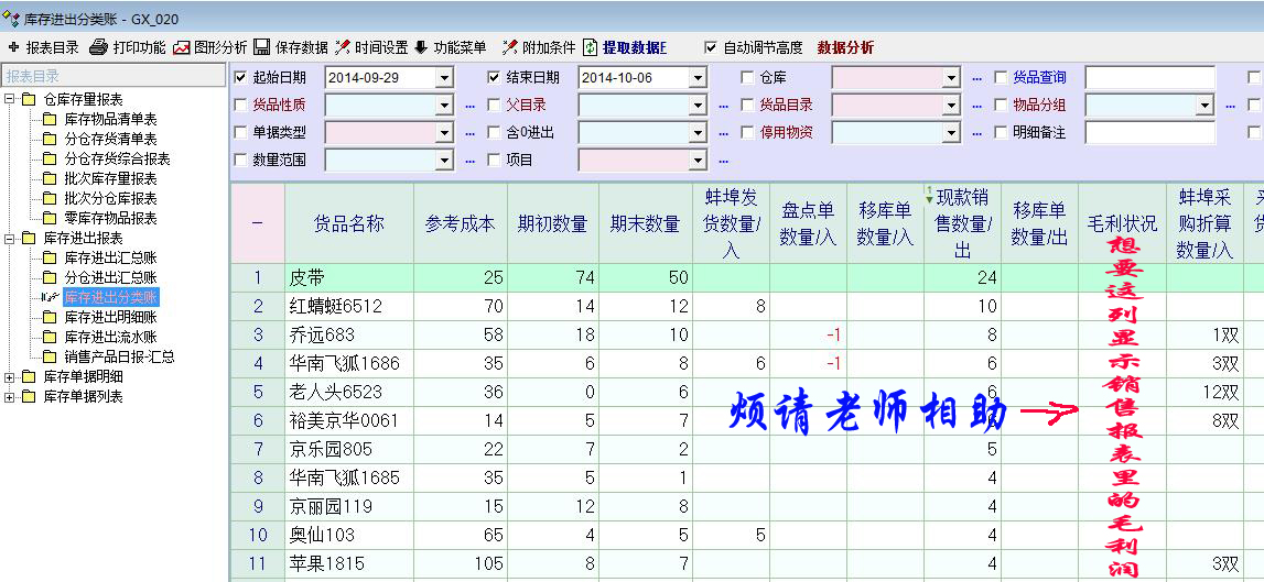 我在本软件帮助里看到有-获得指定列名的值的脚本函数db_res_ext,我在库存进出分类帐报表里新扩展一个列:名称是-毛利状况 。属性编码是xxq1。我想要这个毛利状况获取销售报表里面毛利润(profit)的数值,这样在查看商品库存时就能知晓该商品的销售如何。请帮助我,谢谢。