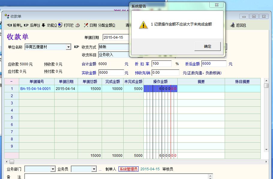 2.填写收款单时,情况如图二,请问是什么问题?