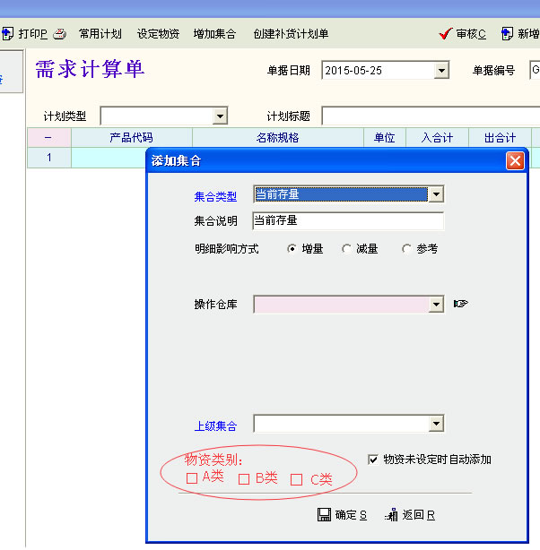 需求计算单选择ABC分类