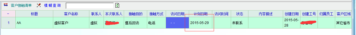 2、前面日期大于后面日期,系统只把前面日期当作计划接触的时间,如图2,图3所示。