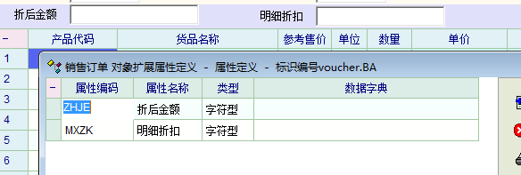 我在表头加了两个项目,自己研究了一个脚本,基本可以解决了 int obj_change() { //can_save=1; int id,r_num; string r_res_id,CPDJ; num HJ,MXHJ,MXZK,ZH; if(change_obj=='edit_ZHJE')//如果折后金额改动 { HJ=grid_get_col_sum("MG_Item","inp_amount");//本单金额合计 // msg(HJ); MXHJ=gui_get_val('edit_ZHJE');//整单明细合计 // msg(MXHJ); MXZK=MXHJ/HJ; // msg(MXZK); gui_set_text('edit_MXZK',num_dec_cut(MXZK,2));//整单折扣输入 if(MXZK>0); { r_num = grid_row_num('MG_Item'); // msg(r_num); for(id=1;id<r_num;id++) { r_res_id=grid_get_v('MG_Item','res_id',id); CPDJ=grid_get_v('MG_Item','inp_price',id); if(r_res_id=='') break; // msg(r_res_id); // msg(CPDJ); if (CPDJ>0) { ZH=num_dec_cut(CPDJ*MXZK,2) // msg(ZH); grid_set_v('MG_Item','inp_price',id,ZH) grid_trigger_change('MG_Item','inp_price',id) }; }; }; }; if(change_obj=='edit_MXZK')//如果折后金额改动 { HJ=grid_get_col_sum("MG_Item","inp_amount");//本单金额合计 // msg(HJ); MXZK=gui_get_val('edit_MXZK');//整单折扣 // msg(MXHJ); MXHJ=MXZK*HJ; // msg(MXZK); gui_set_text('edit_ZHJE',MXHJ);//整单折扣输入 if(MXZK>0); { r_num = grid_row_num('MG_Item'); // msg(r_num); for(id=1;id<r_num;id++) { r_res_id=grid_get_v('MG_Item','res_id',id); CPDJ=grid_get_v('MG_Item','inp_price',id); if(r_res_id=='') break; // msg(r_res_id); // msg(CPDJ); if (CPDJ>0) { ZH=num_dec_cut(CPDJ*MXZK,2) // msg(ZH); grid_set_v('MG_Item','inp_price',id,ZH) grid_trigger_change('MG_Item','inp_price',id) }; }; }; }; return 1; }; |