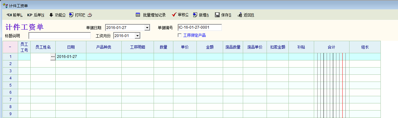 系统中的计件工资单感觉倒挺像实际运用中的加工单。如果将产品种类替换成产品编号或者产品型号,基本上就可以满足我们现在的使用要求了。