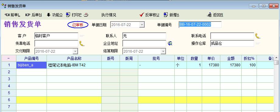 然后使用BB-130模版生成一张销售发货单凭证。