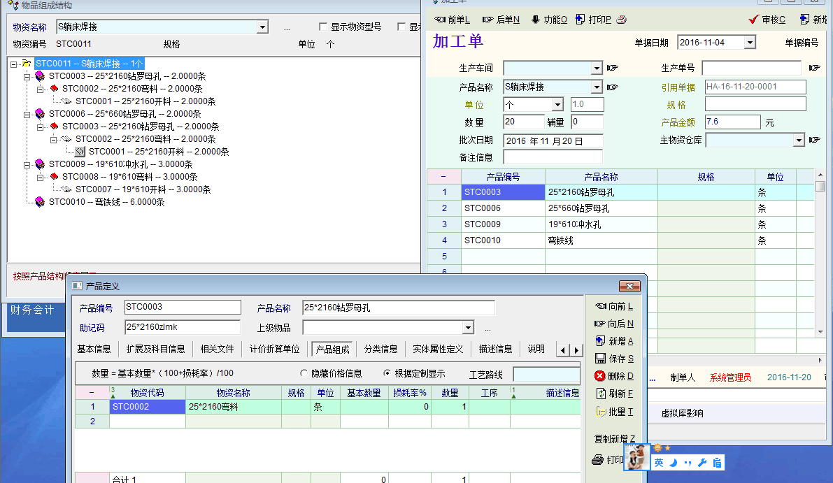 加工       新建加工单   选择加工 物品1  50 能带出物品1所需要的所有明细资料(组件和加工组件的工序 现在未能实现)