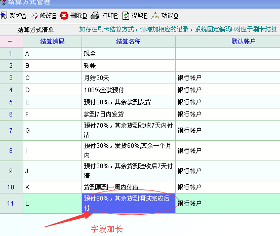 老师,可否在下次改进内 将结算方式内的《结算名称》字段定义长一些,目前写不下,附图。谢谢!
