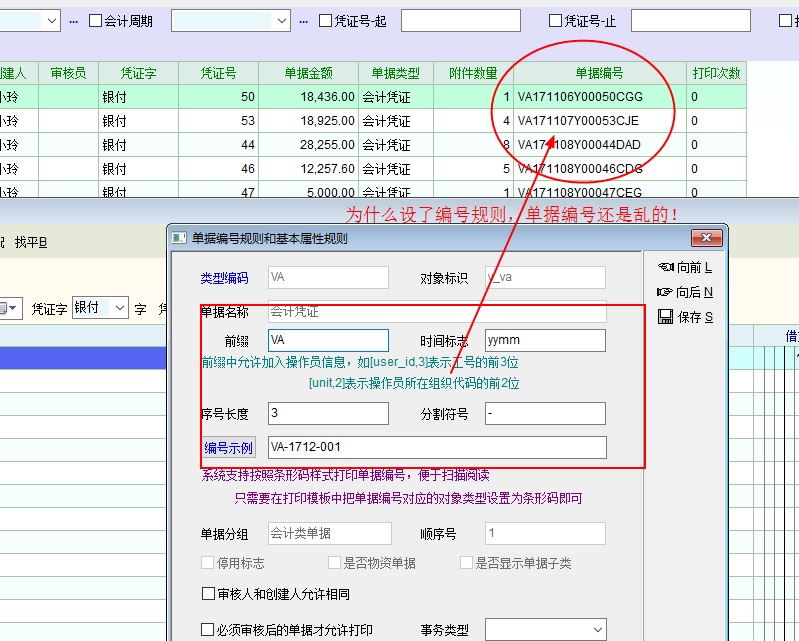 求助_请处理下记帐凭证的单据编号问题。设了编号规则,但单据编号还是随机生成的!_产供销