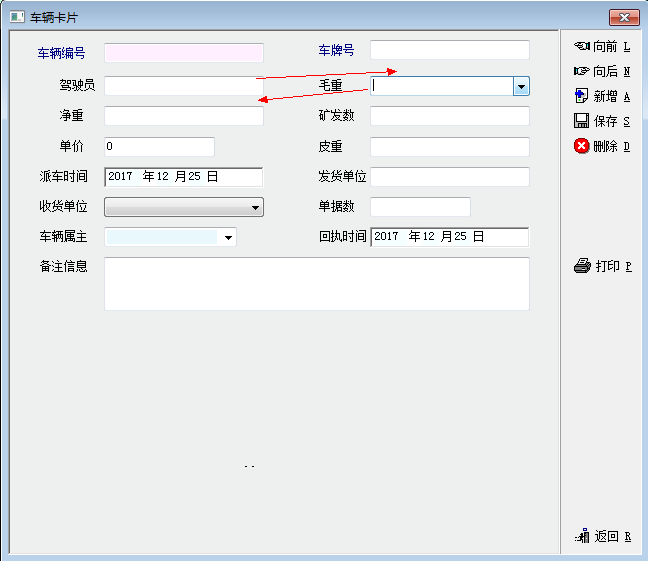 问题二:驾驶员,毛重后面两个选框调整位置。