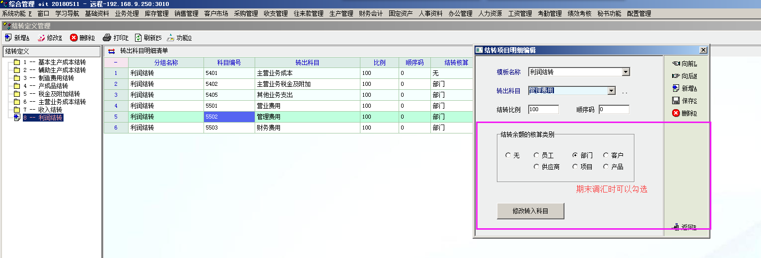 期末调汇时,只能汇总调整不能核算调整,导致应收账款-客户结余不对,但应收账款总账是对的,希望增加向期末结转损益一样,可以在结转模板时定义要结转的项目核算。