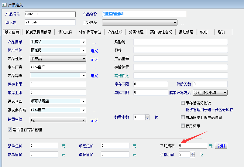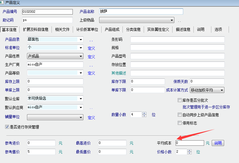 但是入库之后,只有《面团(半成品)》有价格,而《披萨(成品)》无价格:如下图: