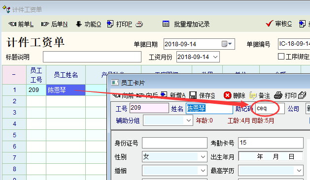 推荐_建议计件工资单中员工姓名输入支持员工姓名助记码输入。_产供销