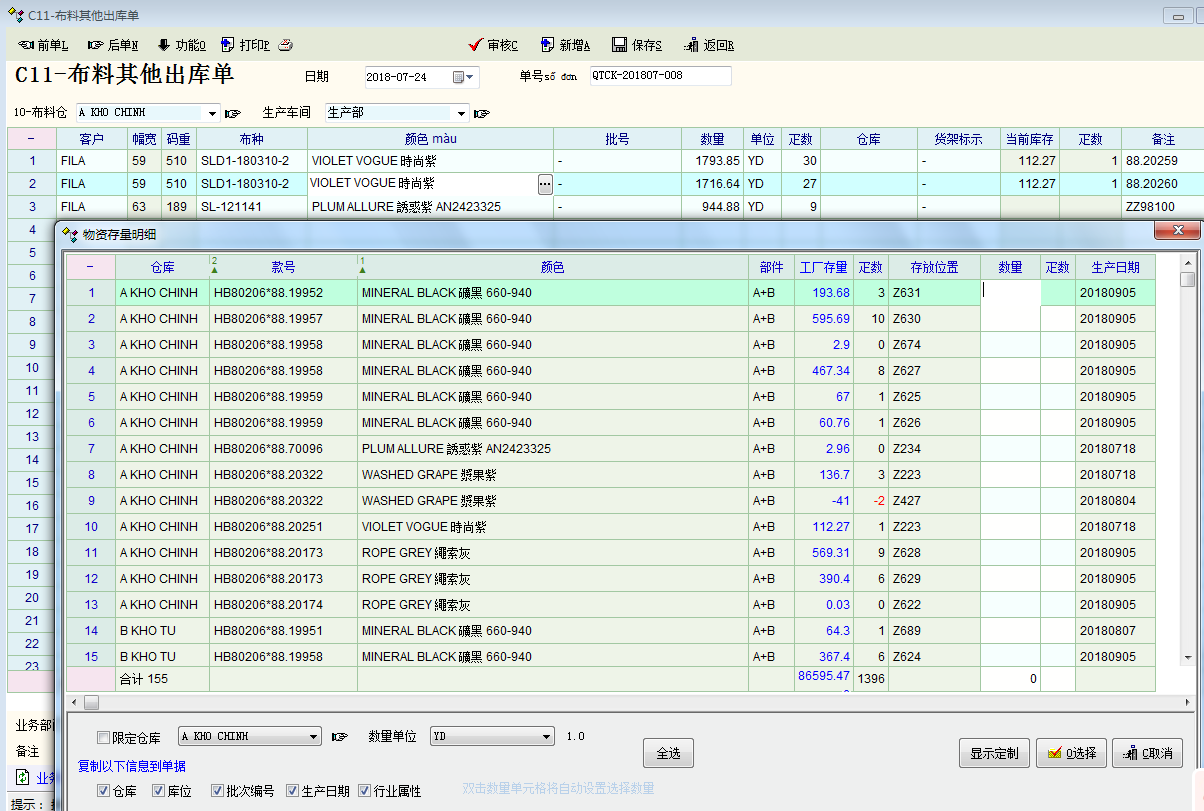 孟老师, 因为服装行业有启用行业属性, 布料出库都是需要根据颜色和缸号来出库的, 目前在出入库单据的批次选择界面只有限定仓库功能来过滤数据, 所以同一个料号(布种)的批次选择界面会有很多颜色, 每次选择都需要通过颜色排序后逐行查找批次,制单效率很低, 所以希望能在:单据-选择批次-的界面增加限定行业属性功能(我主要需要使用行业属性1: 颜色),这样我就可以行业属性1:颜色来过滤批次数据.