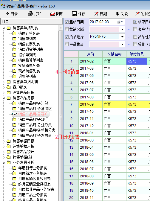 建议在报表的检索条件中添加是否显示0销售月份数据的勾选项。