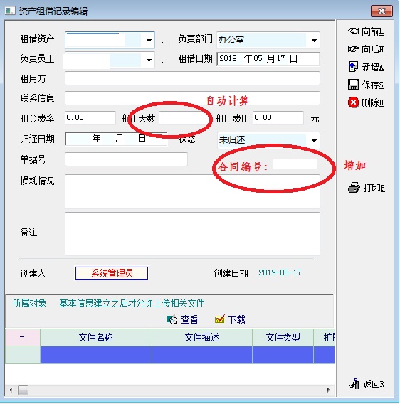 建议在资产租赁中,根据开始和结束时间,增加自动计算资产租赁时长