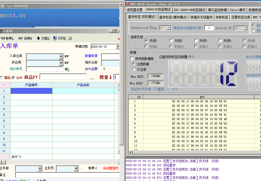 网上购买的RFID模块只提供硬件,服务器端打开测试软件,能读取到数据,但是无法将数据输入到进销存系统中。求教大神帮忙解决下。
