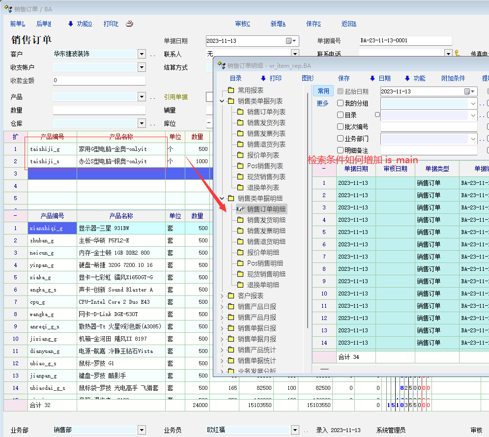 求助_当单据有主产品时,系统默认报表类,如何在检索条件里增加 is_main过滤_想到就说
