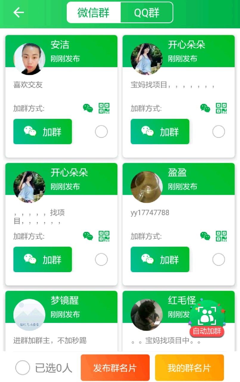 一、发布群加群,发布名片坐等爆粉,扩展人脉;