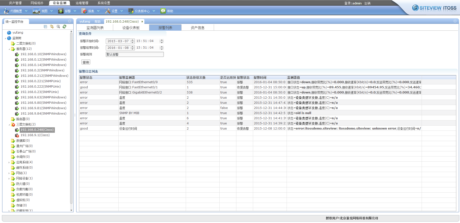 当然了,还可以用SITEVIEW ITOSS支持的云平台、微信监控平台,就真真正正实现了随时随地的远程运维和网络管理了。 当然了,运维不仅是节日期间才有,是不过这段时间大家更为关注罢了,平时,相信这个SITEVIEW ITOSS以软件系统智能式的运维和网管工作带来的便利与简化工作有非常大的作用。 |