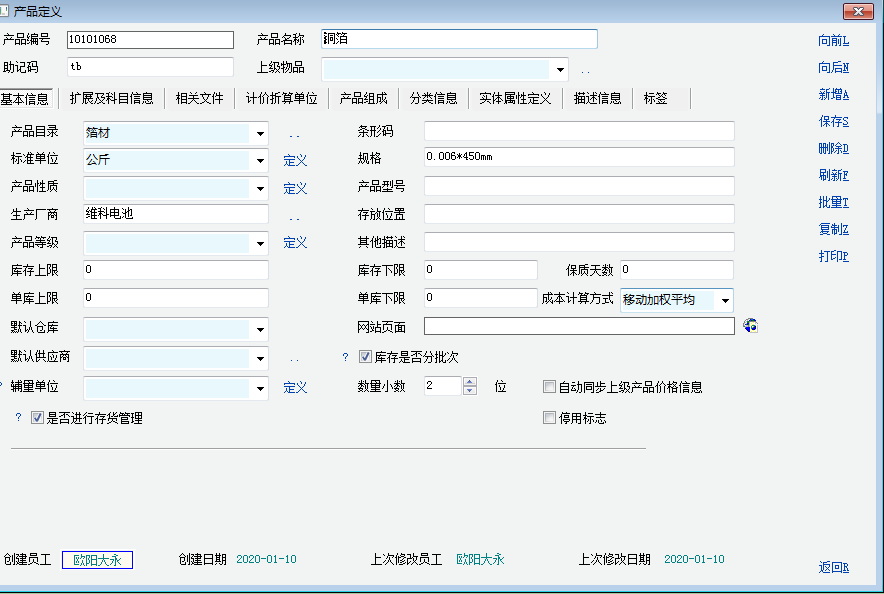 1、新建操作员分组 2、分组里面加入限制权限的操作员 3、获取分组id select * from mup_group; sql工具里面执行上面语句,获取分组id。 5、用下面的代码替换产品记录编辑脚本里面的同名函数 int func_edit_rec() { string gid,uid,sql; uid=get_user_id(); sql="select group_id from mup_group_member where user_id='"+uid+"'"; db_run(sql); gid=db_res('group_id'); if (gid=='190' );//注意,这里gid要填写你第三步获取的组id { //gui_hide('TabSheet_Ext');//隐藏扩展及科目信息tab //gui_hide('Panel_Func');//隐藏右侧增加,删除等按钮 //gui_hide('Panel_Return');//隐藏右下返回按钮 //gui_hide('TabSheet_Ext');//隐藏扩展及科目信息tab //gui_hide('TabSheet_Emp_File');//隐藏相关文件tab //gui_hide('TabSheet_Unit_Type_Ext');//隐藏计价折算单位tab //gui_hide('TabSheet_List_Data');//隐藏分类信息tab //gui_hide('TabSheet_Attr_Def_Frame');//隐藏实体属性tab //gui_hide('TabSheet_Composing');//隐藏产品组成tab /*隐藏成品及价格信息*/ gui_set_parent('Label13','ScrollBox_Cost_Info'); gui_set_parent('Label14','ScrollBox_Cost_Info'); gui_set_parent('Label17','ScrollBox_Cost_Info'); gui_set_parent('Label18','ScrollBox_Cost_Info'); gui_set_parent('Label24','ScrollBox_Cost_Info'); gui_set_parent('Label36','ScrollBox_Cost_Info'); gui_set_parent('Edit_Out_Floor_Price','ScrollBox_Cost_Info'); gui_set_parent('Edit_Out_Ref_Price','ScrollBox_Cost_Info'); gui_set_parent('Edit_Price_Dot_Num','ScrollBox_Cost_Info'); gui_set_parent('UpDown_Dec_Num','ScrollBox_Cost_Info'); gui_hide('ScrollBox_Cost_Info'); /*end隐藏成品及价格信息*/ } return 1; }; 6、这样就隐藏的价格的相关信息,你也可以去掉前面的注释隐藏相应的标签,效果如下: |