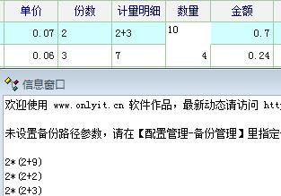 也就是份数乘以明细相加的和得出数量(明细还必须显示成3+2)