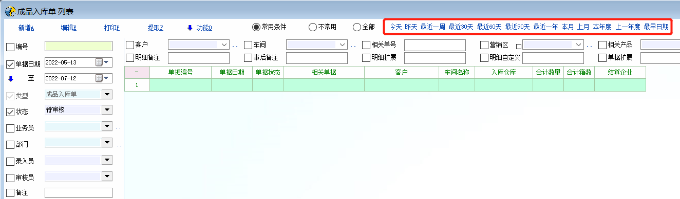 各单据列表经常要用来查询不同日期段的数据,每次查询都要手工设置日期段,官方暂时没有设置类似报表类的日期段选择控件,所以临时用脚本来添加,希望官方能更新这个日期段选择控件(或请哪位大神指导添加二级控件,这样就不用横排所有日期段控件了)。 F3打开单据列表,打开脚本定义添加脚本: int init_win() { call_str('call_prog.date period');//打开单据列表时执行date period脚本自动添加日期段控件 return 1; }; 把下列脚本另存为 date period 或把附件脚本下载后导入到系统 (每个单据列表都可以在脚本定义里添加 call_str('call_prog.date period');来调用) int JinTian() { gui_set_val("DateTimePicker_Voucher_Date_Beg",get_cur_date_std()); gui_set_val("DateTimePicker_Voucher_Date_End",get_cur_date_std()); gui_trigger_click("SpeedButton_Refresh"); return 1; }; int ZuoTian() { gui_set_val("DateTimePicker_Voucher_Date_Beg",get_last_date(get_cur_date_std())); gui_set_val("DateTimePicker_Voucher_Date_End",get_last_date(get_cur_date_std())); gui_trigger_click("SpeedButton_Refresh"); return 1; }; int Zjz() { gui_set_val("DateTimePicker_Voucher_Date_Beg",get_last_date(date_add(get_cur_date_std(),-6))); gui_set_val("DateTimePicker_Voucher_Date_End",get_cur_date_std()); gui_trigger_click("SpeedButton_Refresh"); return 1; }; int Zj30t() { gui_set_val("DateTimePicker_Voucher_Date_Beg",get_last_date(date_add(get_cur_date_std(),-29))); gui_set_val("DateTimePicker_Voucher_Date_End",get_cur_date_std()); gui_trigger_click("SpeedButton_Refresh"); return 1; }; int Zj60t() { gui_set_val("DateTimePicker_Voucher_Date_Beg",get_last_date(date_add(get_cur_date_std(),-59))); gui_set_val("DateTimePicker_Voucher_Date_End",get_cur_date_std()); gui_trigger_click("SpeedButton_Refresh"); return 1; }; int Zj90t() { gui_set_val("DateTimePicker_Voucher_Date_Beg",get_last_date(date_add(get_cur_date_std(),-89))); gui_set_val("DateTimePicker_Voucher_Date_End",get_cur_date_std()); gui_trigger_click("SpeedButton_Refresh"); return 1; }; int Zjn() { gui_set_val("DateTimePicker_Voucher_Date_Beg",get_last_date(date_add(get_cur_date_std(),-364))); gui_set_val("DateTimePicker_Voucher_Date_End",get_cur_date_std()); gui_trigger_click("SpeedButton_Refresh"); return 1; }; int BenYue() { string byc,bym, byc = get_cur_month()+'01' bym = get_cur_month()+get_month_days(get_cur_month()) gui_set_val("DateTimePicker_Voucher_Date_Beg",byc); gui_set_val("DateTimePicker_Voucher_Date_End",bym); gui_trigger_click("SpeedButton_Refresh"); return 1; }; int ShangYue() { num byc,bym, byc = get_cur_month()-1+'01' bym = get_cur_month()-1+get_month_days(get_cur_month()-1) gui_set_val("DateTimePicker_Voucher_Date_Beg",byc); gui_set_val("DateTimePicker_Voucher_Date_End",bym); gui_trigger_click("SpeedButton_Refresh"); return 1; }; int BenNian() { string bnc,bnm, bnc = get_cur_year()+'0101' bnm = get_cur_year()+'1231' gui_set_val("DateTimePicker_Voucher_Date_Beg",bnc); gui_set_val("DateTimePicker_Voucher_Date_End",bnm); gui_trigger_click("SpeedButton_Refresh"); return 1; }; int ShangNian() { num snc,snm, snc = get_cur_year()-1+'0101' snm = get_cur_year()-1+'1231' gui_set_val("DateTimePicker_Voucher_Date_Beg",snc); gui_set_val("DateTimePicker_Voucher_Date_End",snm); gui_trigger_click("SpeedButton_Refresh"); return 1; }; int ZuiZao() { gui_set_val("DateTimePicker_Voucher_Date_Beg",19000101); gui_set_val("DateTimePicker_Voucher_Date_End",get_cur_date_std()); gui_trigger_click("SpeedButton_Refresh"); return 1; }; int main() { gui_create_speedbutton("Panel_Func","JinTian",760,0,25,30,"今天","call_prog.date period.JinTian"); gui_create_speedbutton("Panel_Func","ZuoTian",790,0,25,30,"昨天","call_prog.date period.ZuoTian"); gui_create_speedbutton("Panel_Func","Zjz",820,0,50,30,"最近一周","call_prog.date period.Zjz"); gui_create_speedbutton("Panel_Func","Zj30t",875,0,50,30,"最近30天","call_prog.date period.Zj30t"); gui_create_speedbutton("Panel_Func","Zj60t",930,0,50,30,"最近60天","call_prog.date period.Zj60t"); gui_create_speedbutton("Panel_Func","Zj90t",985,0,50,30,"最近90天","call_prog.date period.Zj90t"); gui_create_speedbutton("Panel_Func","Zjn",1040,0,50,30,"最近一年","call_prog.date period.Zjn"); gui_create_speedbutton("Panel_Func","BenYue",1095,0,25,30,"本月","call_prog.date period.BenYue"); gui_create_speedbutton("Panel_Func","ShangYue",1125,0,25,30,"上月","call_prog.date period.ShangYue"); gui_create_speedbutton("Panel_Func","BenNian",1155,0,40,30,"本年度","call_prog.date period.BenNian"); gui_create_speedbutton("Panel_Func","ShangNian",1200,0,50,30,"上一年度","call_prog.date period.ShangNian"); gui_create_speedbutton("Panel_Func","ZuiZao",1255,0,50,30,"最早日期","call_prog.date period.ZuiZao"); return 1; }; |